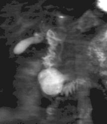 Ultrafast techniques such as HAlf-Fourier Single-shot Turbo Spin Echo (HASTE). The study is performed in a few seconds on AIC’s high-field 1.5 Tesla short-bore Siemens Symphony in a breathhold. Single thick-slab and multi-thin-slice sequences are utilized in axial and coronal planes.
