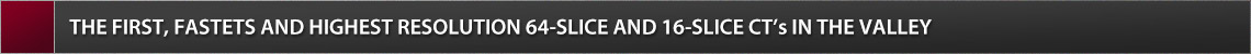 Our Siemens 64-slice CT in Valencia and Toshiba Aquilion 16-slice CT in Lancaster are amongst the fastest multi-detector, multi-slice CT in the AV and SCV (AIC exclusive). The 64-slice CT is the only one in SCV capable of up to 200 images a second and 0.33 mm resolution. The 16-slice CT is capable of up to 40 slices per second and 0.5 mm resolution. Capabilities: routine rapid head/neck and body imaging, coronary angiography, coronary calcification scoring, virtual colonoscopy, complete 3D/4D CT Angio (CTA), multi-planar reformation on advanced workstation.